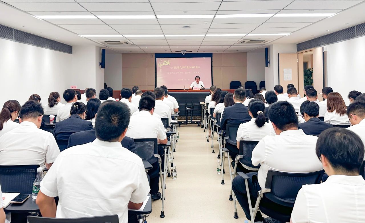 為深入學(xué)習(xí)領(lǐng)會(huì)習(xí)近平總書記關(guān)于全面加強(qiáng)黨的紀(jì)律建設(shè)的重要論述,以及關(guān)于黨紀(jì)學(xué)習(xí)教育的重要講話和重要指示精神,7月18日,公司以“現(xiàn)場(chǎng)+視頻”方式召開全體職工會(huì)議,公司黨總支部書記、董事長(zhǎng)杜開波同志為全體職工講授黨紀(jì)學(xué)習(xí)教育紀(jì)律黨課并進(jìn)行集體廉政談話。省公司全體黨員職工及各分支機(jī)構(gòu)負(fù)責(zé)人、主管、綜合崗和部分黨員職工現(xiàn)場(chǎng)參會(huì),各分支機(jī)構(gòu)其他黨員職工以視頻方式參會(huì)。