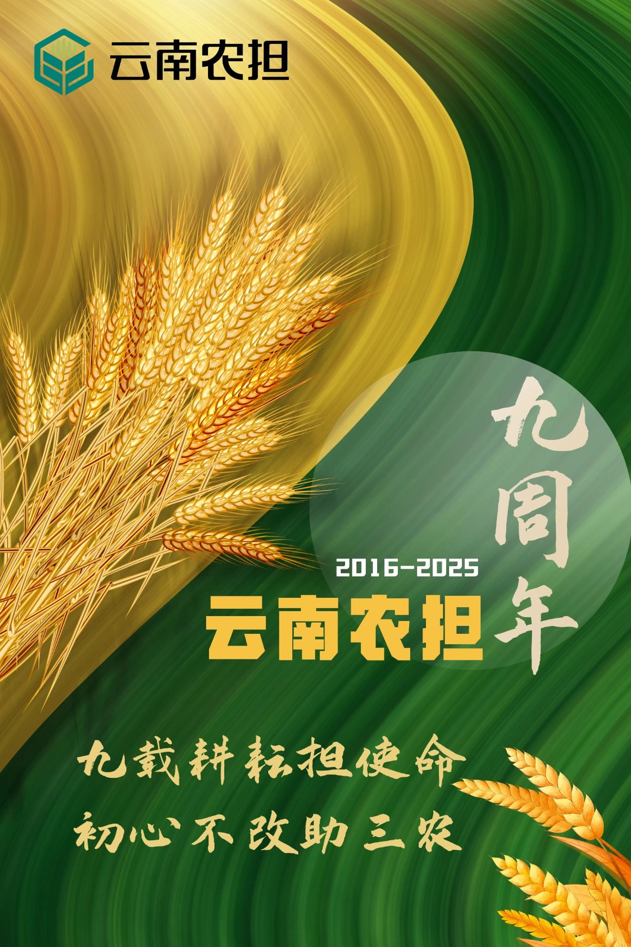 值此九周年之際,向長期關(guān)心支持農(nóng)擔事業(yè)改革發(fā)展的各級領(lǐng)導、合作伙伴和全體同仁致以最誠摯的感謝!站在九周年的新起點,云南農(nóng)擔將繼續(xù)秉持“惠農(nóng)、為農(nóng)、不脫農(nóng)”的宗旨,以更加堅定的信念、更加昂揚的斗志、更加務(wù)實的作風,聚焦主責主業(yè),在服務(wù)云南現(xiàn)代化農(nóng)業(yè)強省建設(shè)的壯闊征程中再創(chuàng)佳績、再立新功!