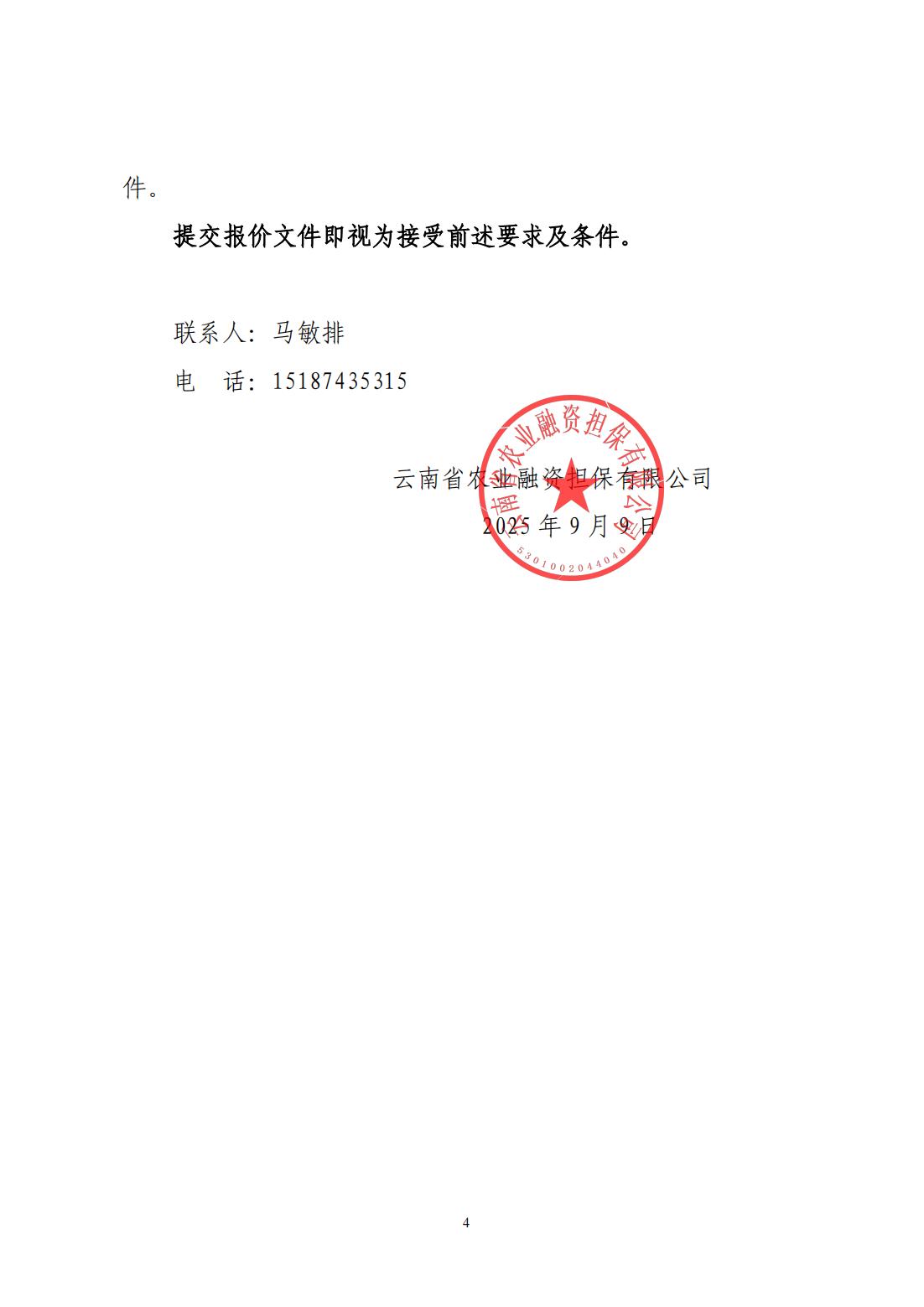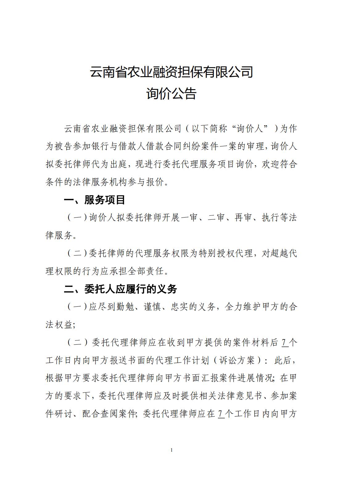 云南省農(nóng)業(yè)融資擔(dān)保有限公司詢價(jià)公告