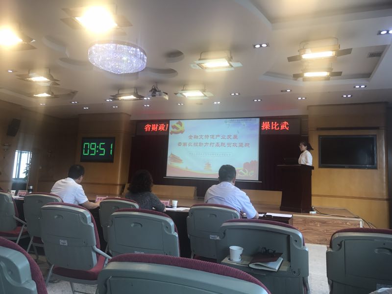 2018年8月22日,公司黨支部積極參加廳機關(guān)組織的讀書活動。李學(xué)寧同志代表公司參加省財政廳“雙微”實操比武,以《金融支持促產(chǎn)業(yè)發(fā)展 云南農(nóng)擔(dān)助力打贏脫貧攻堅戰(zhàn)》為主題,講述農(nóng)擔(dān)公司如何以產(chǎn)業(yè)扶貧助力打贏脫貧攻堅戰(zhàn),為云南“三農(nóng)”添磚加瓦。