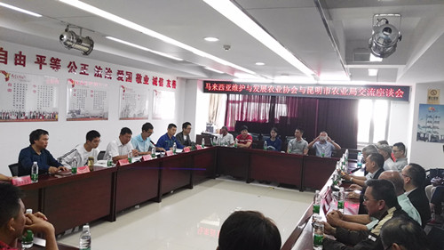 8月29日馬來西亞維護(hù)與發(fā)展協(xié)會(huì)會(huì)長(zhǎng)、皇室拿督蔡振行博士一行27人到昆明市農(nóng)業(yè)局開展農(nóng)業(yè)交流,市農(nóng)業(yè)局倪淼副局長(zhǎng)、局辦公室、人事處、種植業(yè)處、畜牧處、市場(chǎng)信息處、質(zhì)監(jiān)處等相關(guān)處室人員參加座談會(huì)。