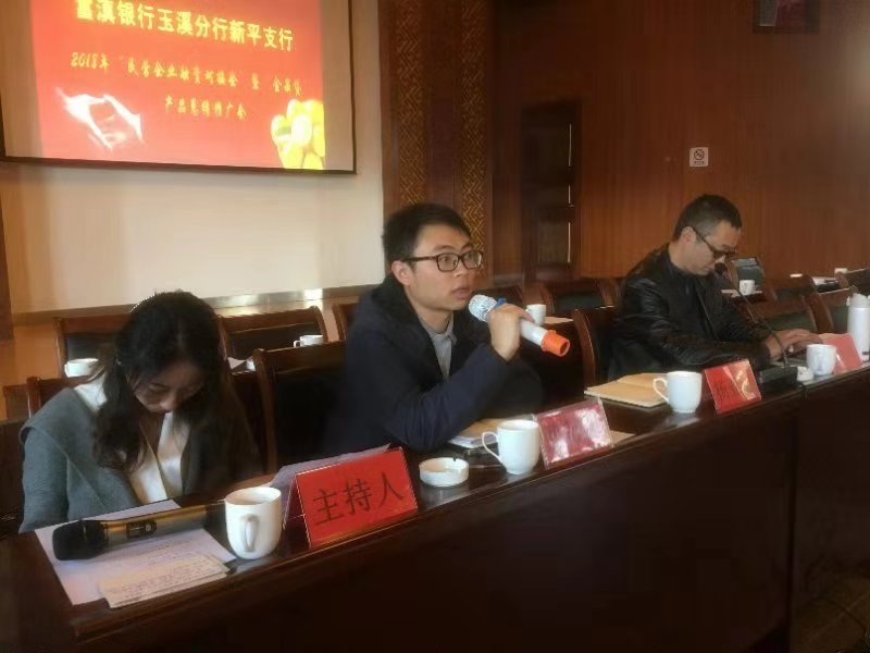 2018年12月6日,玉溪辦事處莽林琦、段曉萍應(yīng)邀參加富滇銀行玉溪新平支行2018年“民營經(jīng)濟(jì)座談會”暨“金果貸”產(chǎn)品推廣總結(jié)會。新平縣人民銀行、工業(yè)園區(qū)、工信局、財政局、招商局、農(nóng)業(yè)局、林業(yè)局、云南省信用再擔(dān)保有限公司及新平縣47家農(nóng)業(yè)企業(yè)代表參與會議。玉溪辦莽林琦對農(nóng)擔(dān)公司成立背景、客戶準(zhǔn)入、業(yè)務(wù)流程、反擔(dān)保條件及玉溪地區(qū)業(yè)務(wù)開展情況等進(jìn)行了詳細(xì)介紹,對國家金融惠農(nóng)政策進(jìn)行宣講,并與參會企業(yè)進(jìn)行互動交流、現(xiàn)場答疑。富滇銀行玉溪分行公司部總經(jīng)理楊亞進(jìn)、個人業(yè)務(wù)部總經(jīng)理張玉宇對富滇銀行主要涉農(nóng)產(chǎn)品及目前發(fā)展現(xiàn)狀與玉溪辦進(jìn)行交流探討,雙方達(dá)成支持新平縣特色產(chǎn)業(yè)發(fā)展的共識,為推進(jìn)新平“金果貸”業(yè)務(wù)進(jìn)一步拓展夯實合作基礎(chǔ)。