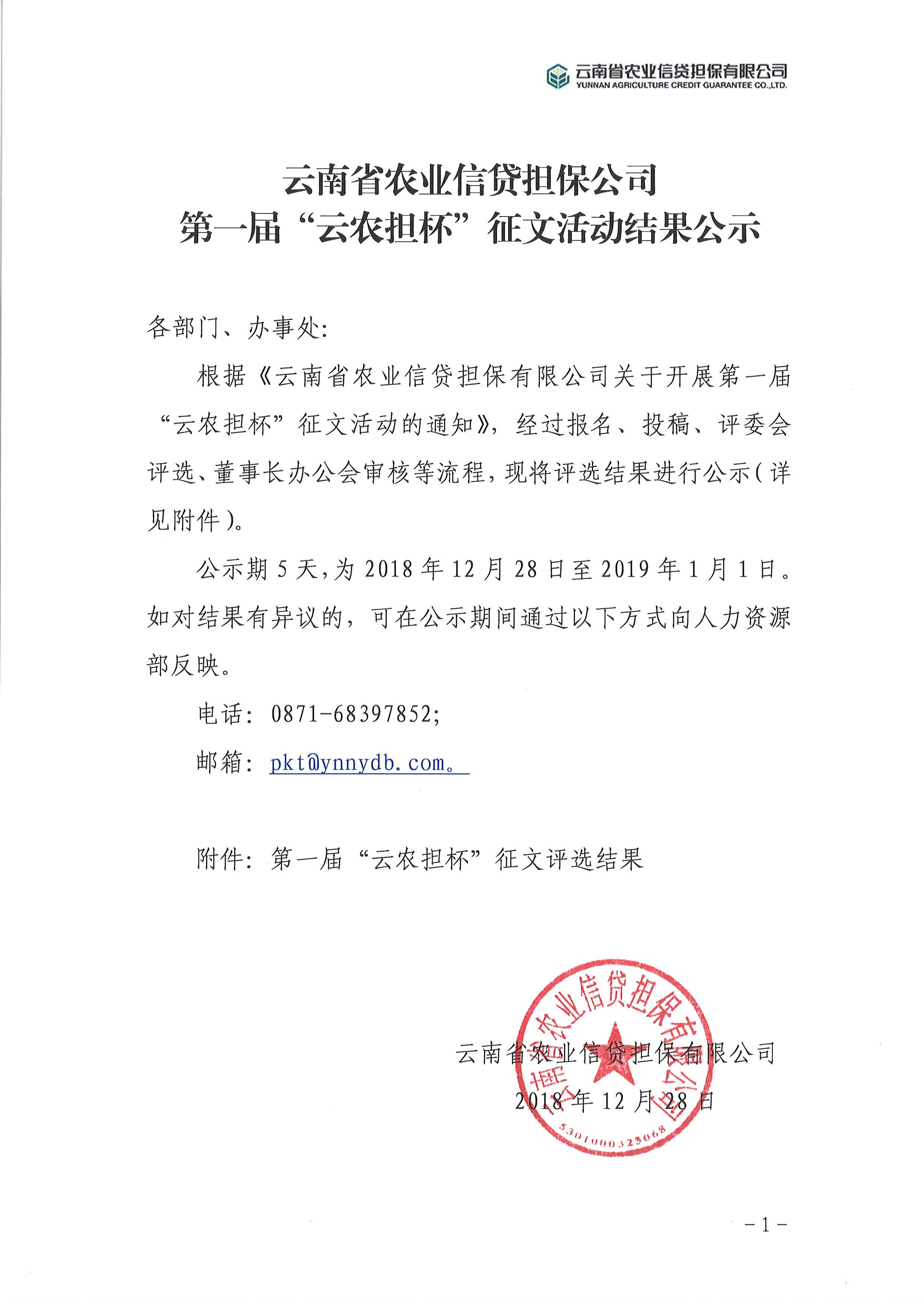 云南省農(nóng)業(yè)信貸擔(dān)保公司第一屆“云農(nóng)擔(dān)杯”征文活動(dòng)結(jié)果公示各部門、辦事處: