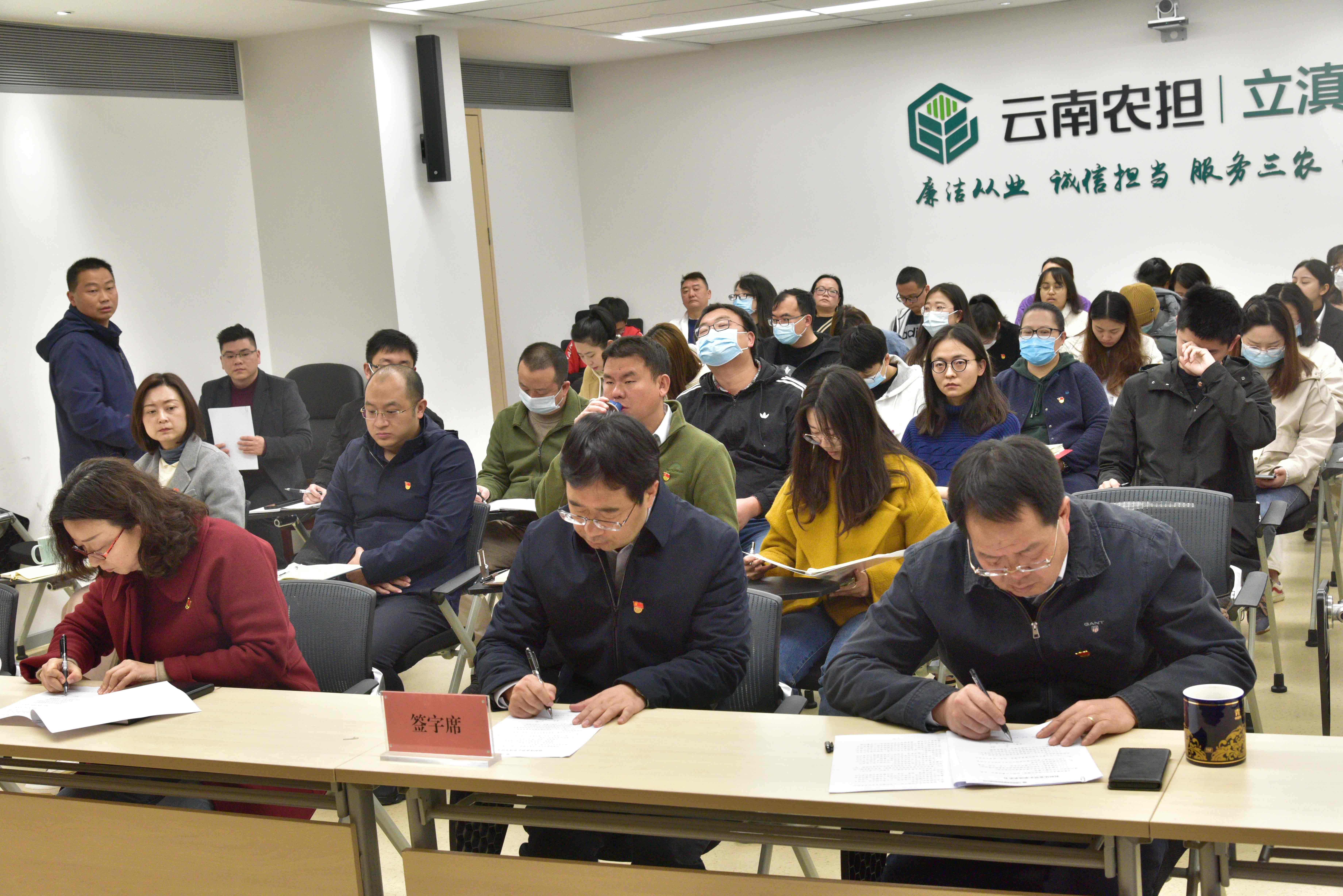 2月20日,云南省農(nóng)業(yè)融資擔(dān)保有限公司召開巡察整改專題警示教育大會。公司黨總支部書記、郭影作巡察整改專題警示教育宣講,組織員工簽訂《農(nóng)擔(dān)從業(yè)禁止事項承諾書》,黨總支部紀檢委員李建華作提升員工廉潔和服務(wù)意識培訓(xùn)。會議由郭影同志主持,省公司全體員工參加了會議,州市辦事處員工通過視頻會議方式參會。