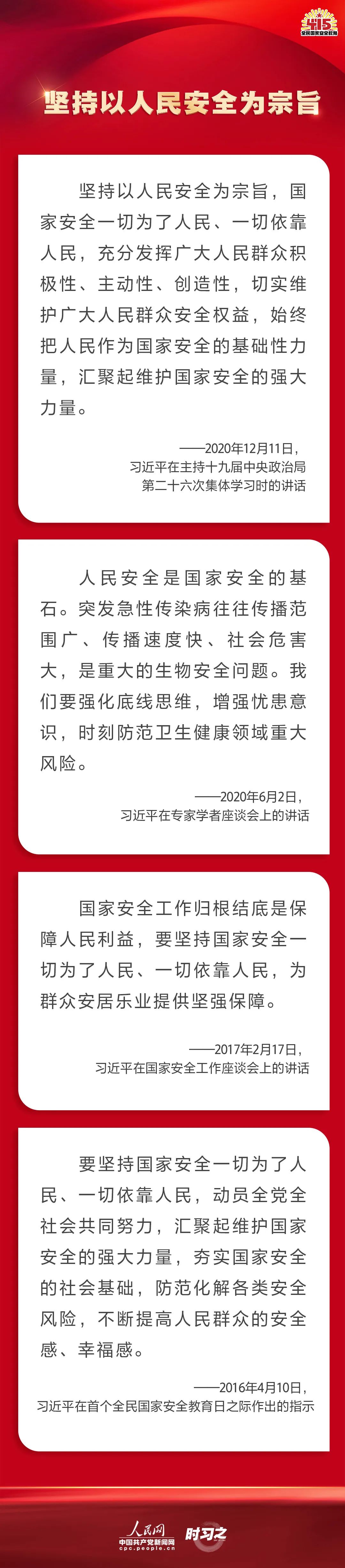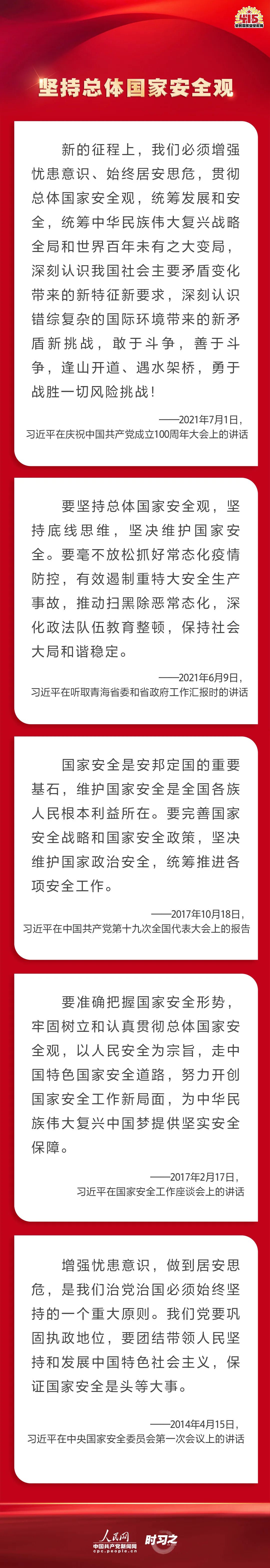 備豫不虞,為國常道。實現中華民族偉大復興的中國夢,保證人民安居樂業(yè),國家安全是頭等大事。在第七個全民國家安全教育日到來之際,一起回顧習近平總書記在不同場合就維護、筑牢國家安全觀發(fā)表的一系列重要論述,增強維護國家安全的責任感、使命感、緊迫感。