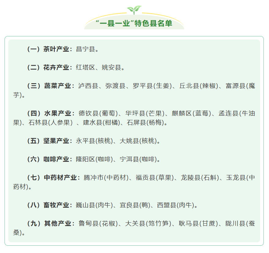 2022年度云南省“一縣一業(yè)”示范創(chuàng)建縣