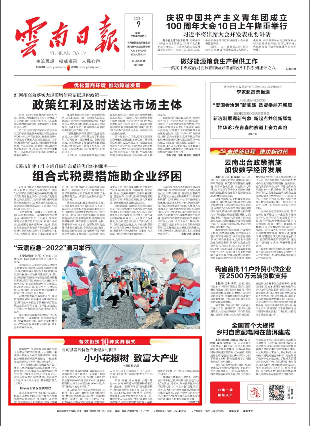 《云南日?qǐng)?bào)》頭版