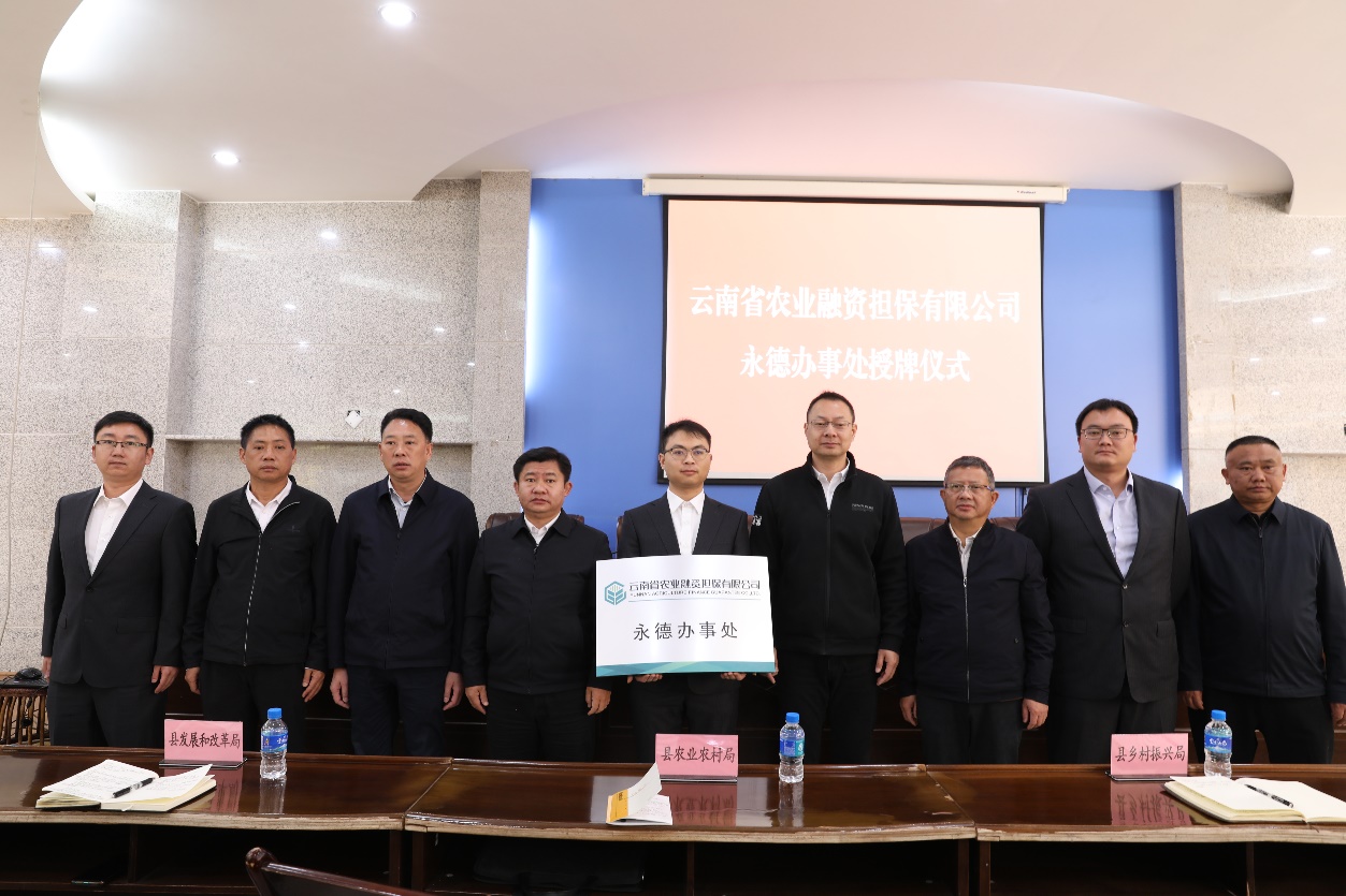 為進(jìn)一步完善我省農(nóng)業(yè)信貸擔(dān)保體系,發(fā)揮好農(nóng)業(yè)融資擔(dān)保撬動(dòng)作用。2023年2月15日,云南省農(nóng)業(yè)融資擔(dān)保有限公司永德辦事處授牌儀式在永德縣財(cái)政局舉行。永德縣委副書記、縣長(zhǎng)彭春蕊、公司總經(jīng)理李世偉、臨滄市金融辦副主任唐興華、臨滄市農(nóng)業(yè)農(nóng)村局三級(jí)調(diào)研員江鴻鍵等領(lǐng)導(dǎo)出席會(huì)議。永德縣財(cái)政局(金融辦)、縣農(nóng)業(yè)農(nóng)村局、縣鄉(xiāng)村振興局、縣11個(gè)鄉(xiāng)(鎮(zhèn))人民政府有關(guān)單位領(lǐng)導(dǎo)、縣人民銀行及縣域內(nèi)金融機(jī)構(gòu)主要負(fù)責(zé)人,農(nóng)擔(dān)公司戰(zhàn)略發(fā)展部、業(yè)務(wù)發(fā)展部參加儀式。