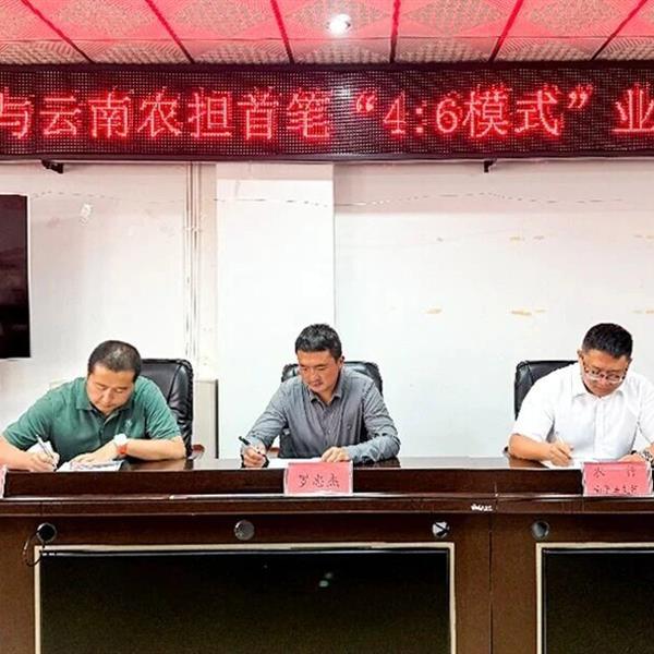 云南農(nóng)擔(dān)公司與中國農(nóng)業(yè)銀行云南省分行簽署“4:6產(chǎn)品模式”協(xié)議。