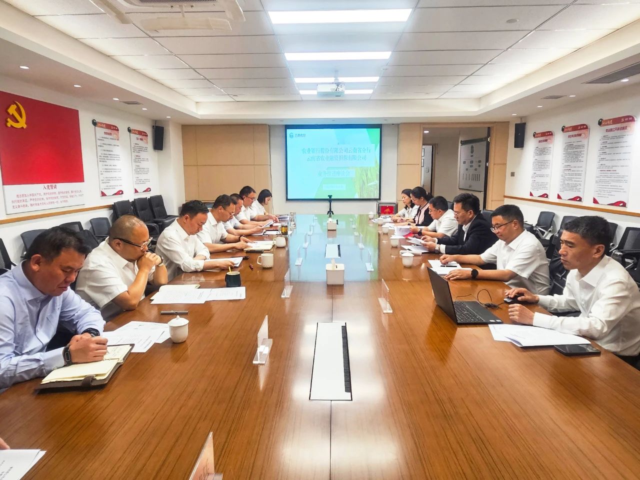 6月13日,農(nóng)業(yè)銀行云南省分行到訪云南農(nóng)擔(dān)公司開(kāi)展業(yè)務(wù)推進(jìn)座談,進(jìn)一步落實(shí)雙方年初銀擔(dān)合作座談會(huì)議精神,總結(jié)上半年工作進(jìn)展情況,謀劃推動(dòng)下半年各項(xiàng)工作。農(nóng)業(yè)銀行云南省分行黨委委員盧偉,省公司總經(jīng)理李世偉,副總經(jīng)理廖寅皓、梁威出席會(huì)議。農(nóng)業(yè)銀行云南省分行鄉(xiāng)村振興金融部、普惠金融事業(yè)部、農(nóng)戶金融部及省農(nóng)擔(dān)公司業(yè)務(wù)發(fā)展部、風(fēng)險(xiǎn)控制部、資產(chǎn)保全與法律事務(wù)部、戰(zhàn)略發(fā)展部負(fù)責(zé)人參加會(huì)議。