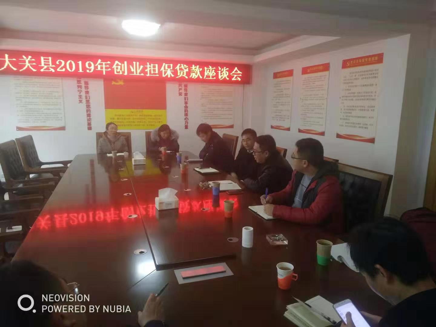 2月19日,昭通辦事處負責人朱磊攜辦事處人員到中國農(nóng)業(yè)銀行大關縣支行與大關縣勞動就業(yè)局局長鄧飛、大關縣財政局涉外科陳清華、農(nóng)業(yè)銀行大關縣支行行長袁龍強圍繞農(nóng)擔與政府協(xié)議開展座談。
