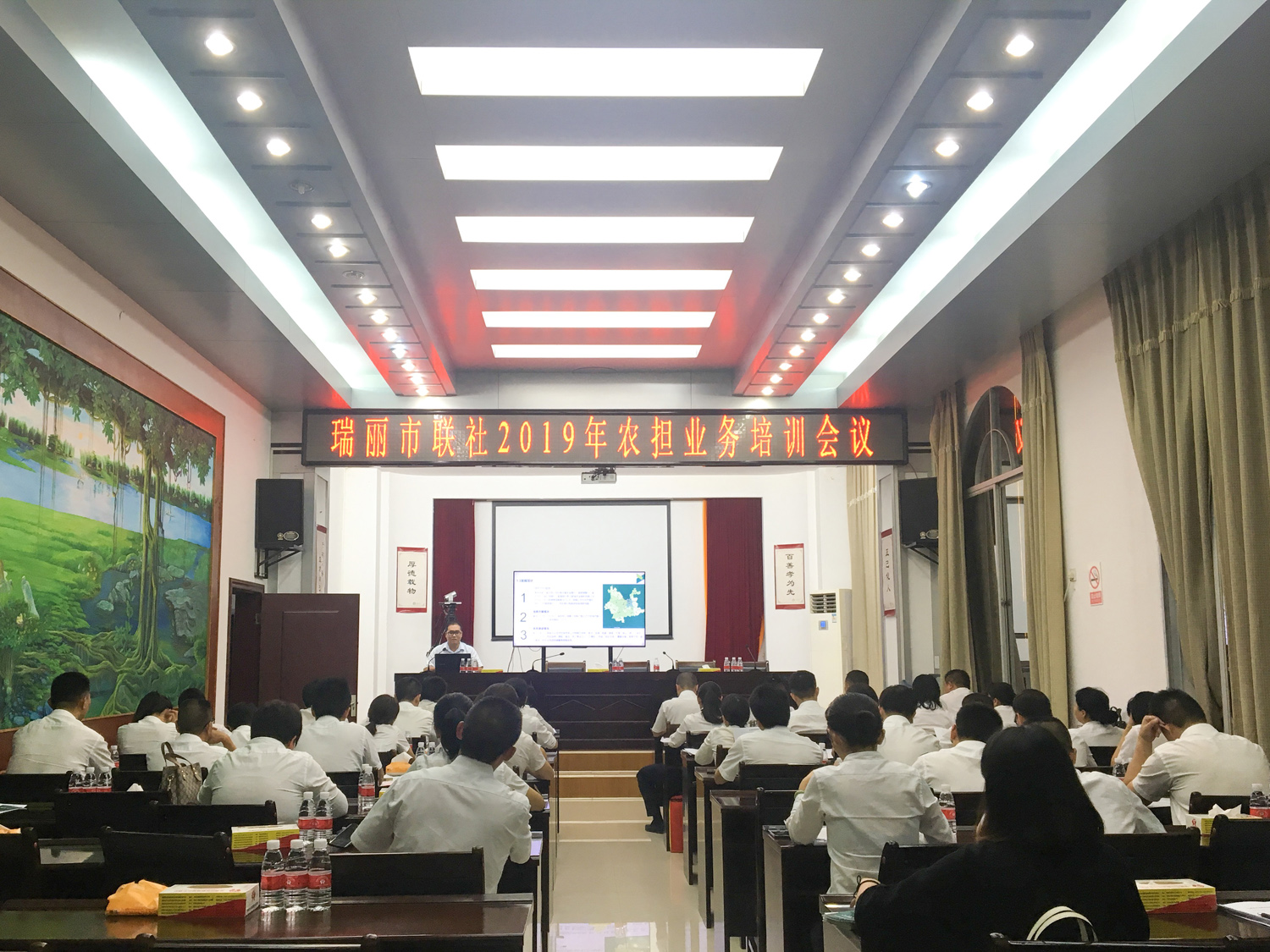 今天的德宏,是我國“一帶一路”的重要國際陸港、面向南亞東南亞輻射中心的關(guān)鍵點、中緬經(jīng)濟走廊的門戶樞紐。為更好的推動自由貿(mào)易試驗區(qū)瑞麗市的業(yè)務(wù)開展,深化銀擔合作,10月29日,德宏辦事處項目經(jīng)理閆忠魁、尹瑞、張雯雯一行赴瑞麗市農(nóng)村信用合作聯(lián)社開展業(yè)務(wù)交流座談會,并受邀進行業(yè)務(wù)培訓會。瑞麗市聯(lián)社監(jiān)事長尹金能、副主任郭建材、信貸部經(jīng)理施婷及市內(nèi)各網(wǎng)點主任及信貸經(jīng)理共40人參會。