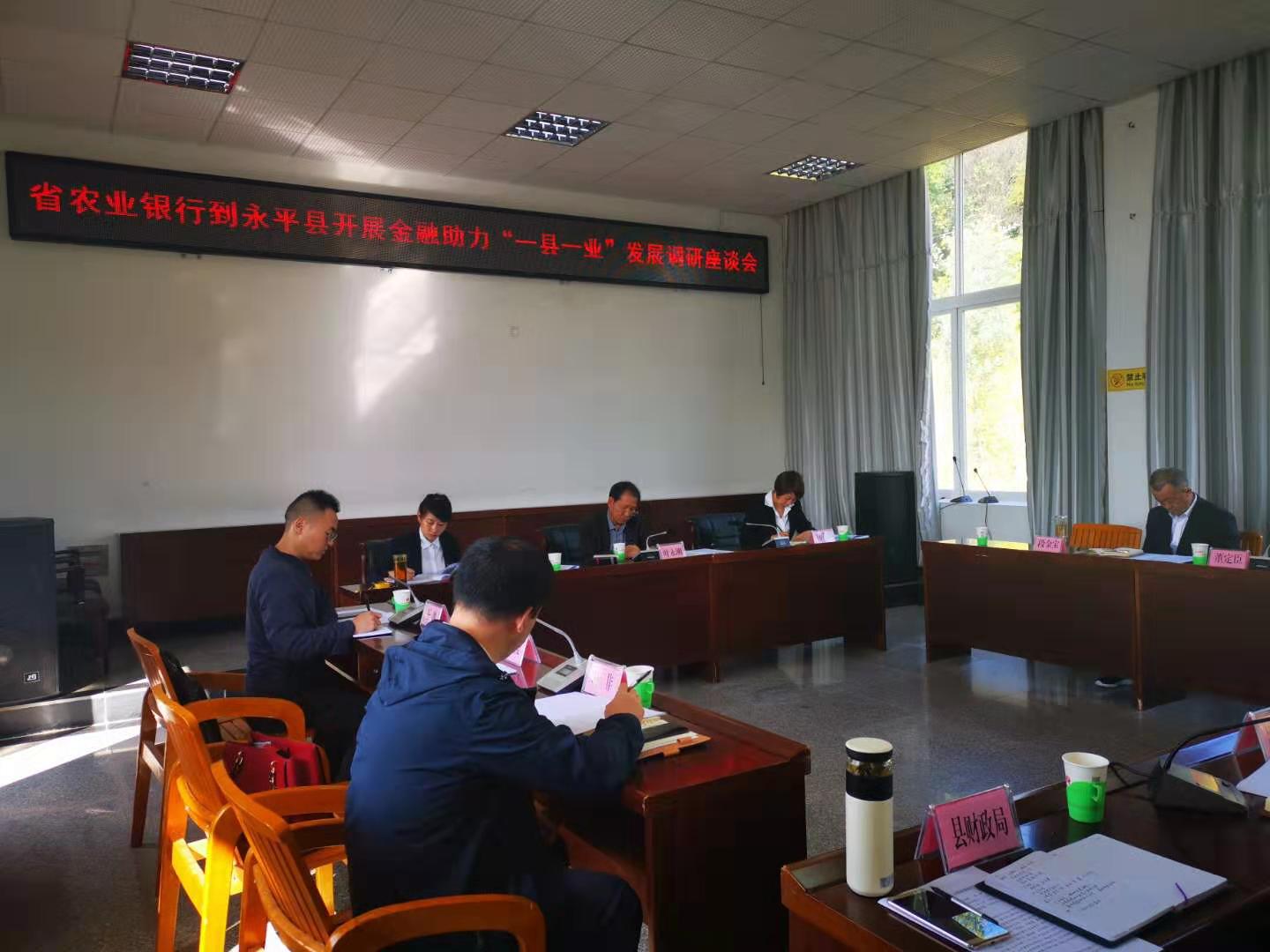 大理辦事處邀請(qǐng)參加省農(nóng)業(yè)銀行、永平縣人民政府牽頭組織的金融助力”一縣一業(yè)”發(fā)展調(diào)研座談會(huì)