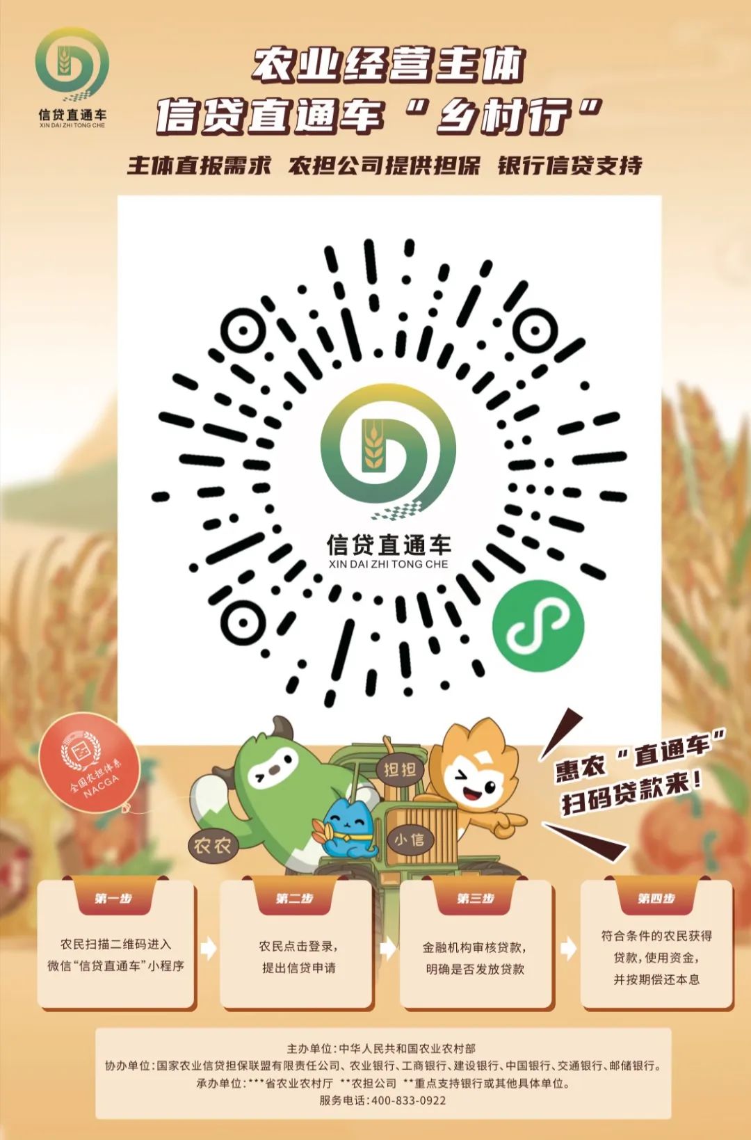 啟動會上,農業(yè)農村部計劃財務司副司長王衍再次強調了開展農業(yè)經(jīng)營主體信貸直通車“鄉(xiāng)村行”活動的重大意義,對下一步如何開展好此項活動也提出了明確的要求;國擔聯(lián)盟公司、工行、農行、中行、建行、交行以及郵儲銀行各總行相關負責人也針對推動“鄉(xiāng)村行”活動交流了意見;以北京、浙江、貴州等省份為主的農業(yè)農村主管部門和省級農擔公司也連線介紹了前期準備工作情況,交流了活動推進初期取得的成效。