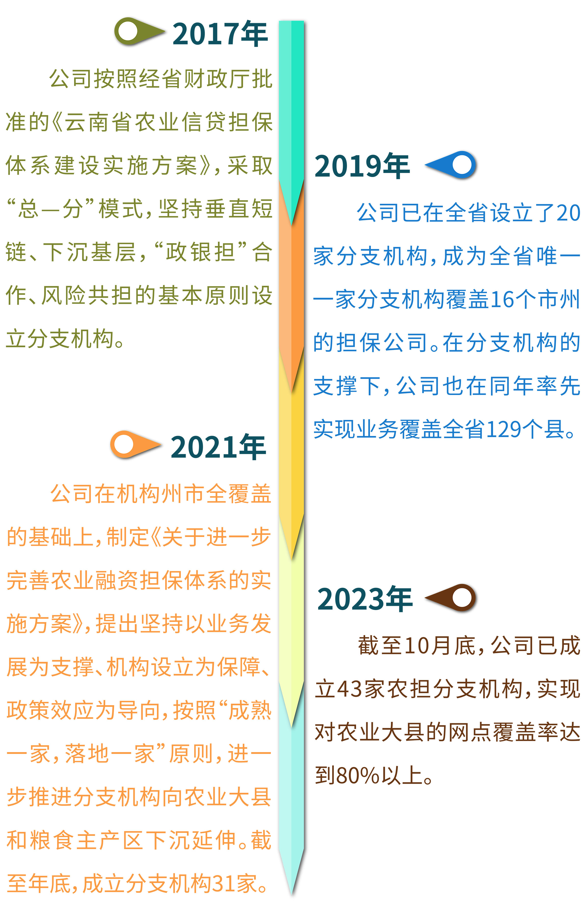 近日,隨著公司彝良辦事處、云縣辦事處先后掛牌,全省共計43家農(nóng)擔分支機構投入運營,我省農(nóng)業(yè)信貸擔保體系建設規(guī)劃全面完成,農(nóng)業(yè)信貸擔?;A進一步夯實,支農(nóng)助農(nóng)手段顯著增強。
