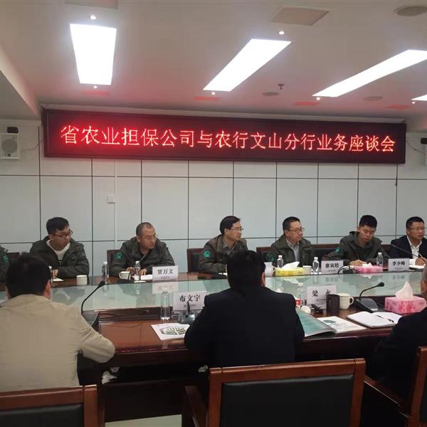 11月27日,省農(nóng)擔公司董事長郭影一行攜文山、硯山辦事處人員前往農(nóng)業(yè)銀行文山州分行參加座談。