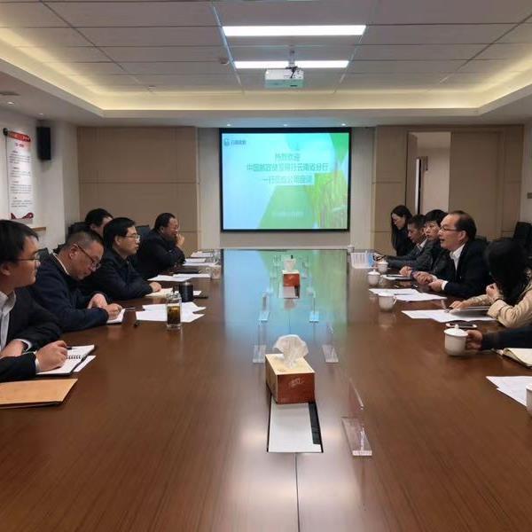 2018年11月8日下午,郵儲銀行云南省分行孟浩副行長攜三農(nóng)金融部、授信部到云南省農(nóng)擔(dān)公司座談。